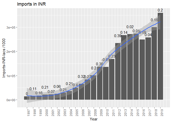 - Y-axis variable Import value in USD millions / INR lacs