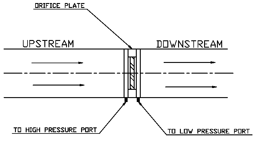 For the gas line, install the orifice plate so that the differential ports are at the top of the gas pipe to avoid solid particles.