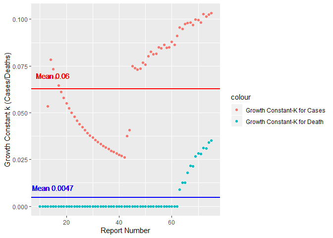 Average Exponential Growth constant ‘k’ for total cases: 0.06/day (World-0.18/day & China 0.17/day)