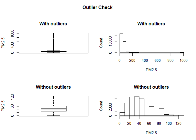 The PM2.5 data has 3.3% outliers and the details of outliers are given in the below analysis. After removing the outliers the PM2.5 level for Sanathnagar falls under the category of “moderate” in monsoon season & “unhealthy” in other seasons.