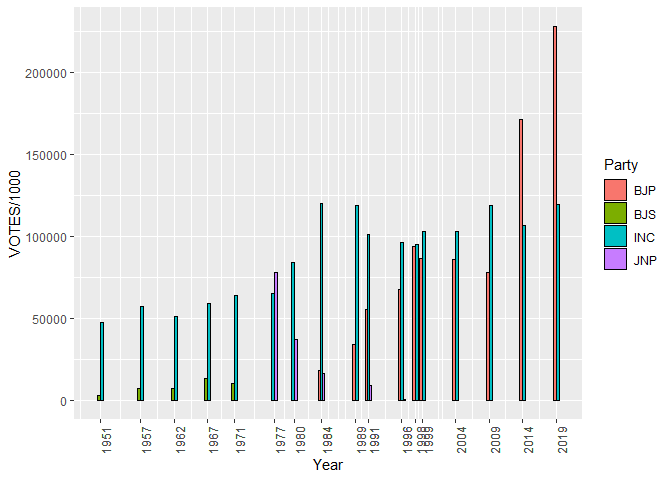 - The votes of BJP preceding parties BJS, JS, BLD & JNP were combined in the name of BJP.