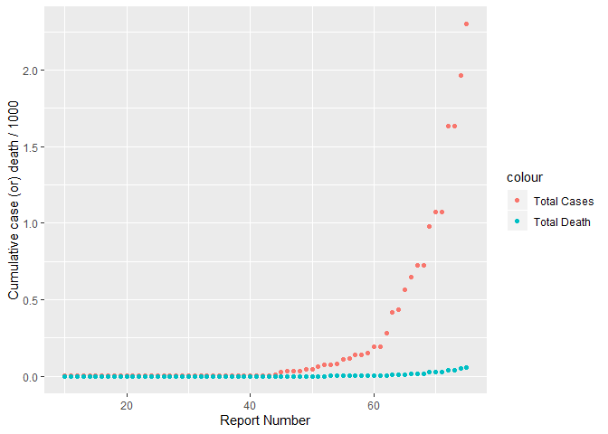 இறப்புகளுக்கான வளர்ச்சி மாறிலியின் மதிப்பு ஆரம்பத்தில் புறக்கணிக்கத்தக்க மதிப்பை கொண்டிருந்தது. ஆனால் தற்போது அதி வேகமாக அதிகரித்துக் கொண்டிருக்கிறது.